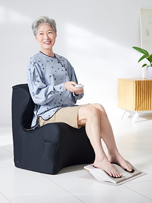 足裏の場合、足裏を通じてふくらはぎに伝わるため、人によっては、刺激がふくらはぎの全体に充分伝わらない場合もありましたが、ふくらはぎを直接刺激することが可能になり、より心地よい体感が得られるようになりました。 -