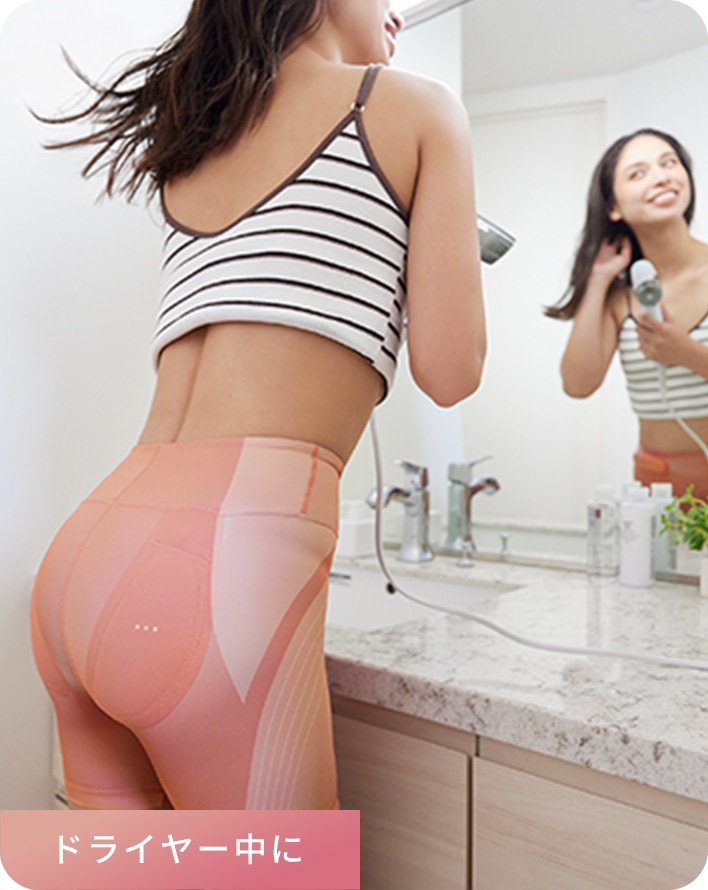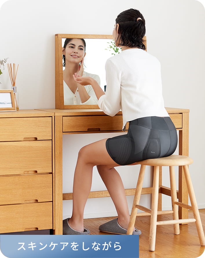 何かをしながら、いつでも、どこでも。好きな時間に1日1回23分間のオートトレーニングが可能に。また、ガードルとは違い、1日23分のみの着用で良いため長時間の締め付け感や日中の蒸れに悩む方にもおすすめです。