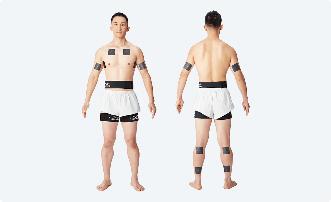 8チャンネル16電極で、腹部のインナーマッスルだけでなく、