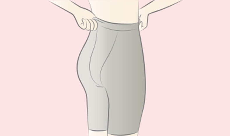 ヒップ周囲が2サイズに当てはまる場合は、小さいほうのサイズを推奨しています。