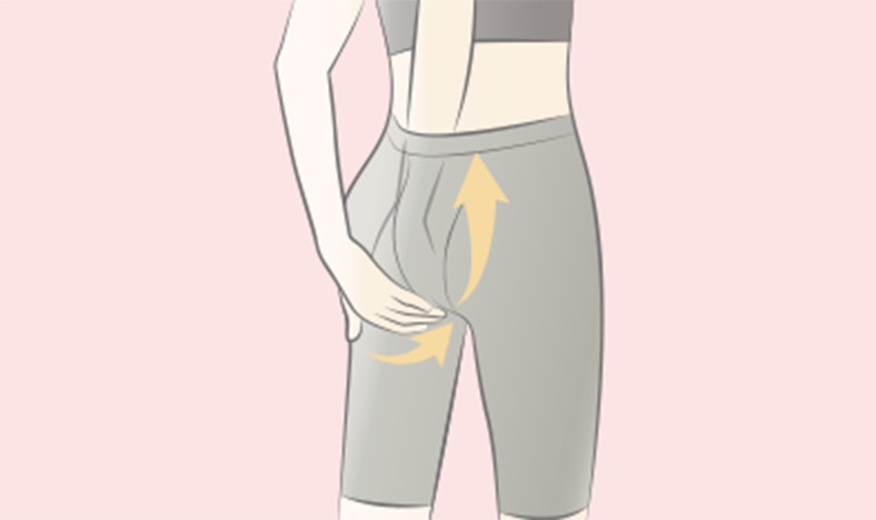 ダブルで持ち上げ、ゆるんだ骨盤底筋をサポート。